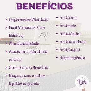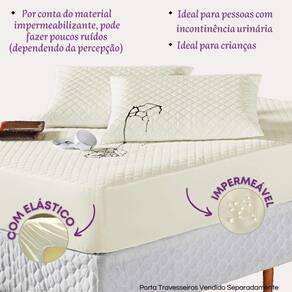 Kit protetor colchão king + 2 capa de travesseiro impermeável + saia box palha O kit impermeável matelado é o um combo indispensável para sua cama. O protetor e o porta travesseiros impermeável irão proteger seu colchão e travesseiro de eventuais acidentes com bebidas, líquidos, sujeira em geral e também da transpiração noturna, o que poderá proporcionar maior vida útil para seu enxoval.