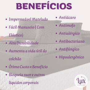 Conteúdo da embalagem - 01 protetor de colchão solteiro: 1,88 m x 88 cm x 30 cm - 01 porta travesseiros: 70 cm x 50 cm - 01 saia box nas medidas: 1,90 m x 90 cm x 35cm