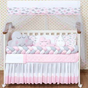 O Protetor de Berço Nuvem Trançado Rosa Baby 11 Peças é perfeito para deixar o quarto do seu bebê mais alegre e cheio de amor. Com um kit completo de 11 peças na cor rosa, a decoração do berço ganha estampas e bordados e muito delicados. Esse kit conta com itens fabricados em tecido estampado 100% algodão, tecidos lisos 50% algodão e 50% poliéster, e enchimento 100% poliéster. Tudo pensado com muito carinho para proporcionar conforto e segurança ao seu pequeno. O edredom dupla face matelado é perfeito para aquecer nos dias mais frios do ano, enquanto o jogo de lençol, com fronha e lençol de cima, evita o contato entre o bebê e a superfície do colchão. Os protetores de cabeceira e laterais são ideais para evitar que o bebê prenda os bracinhos ou as perninhas nas grades do berço. O Kit Protetor de Berço 11 peças contém: - 01 Cabeceira 57 x 37 cm - 01 Lateral 125 x 25 cm - 01 Trança 125 x 12 cm - 01 Lençol de cima 130 x 90 cm - 100% Algodão - 01 Fronha 28 x 38 cm - 100% Algodão - 01 Bandô do mosquiteiro 140 x 20 cm - 01 Mosquiteiro 450 x 150 cm - 01 Edredom 130 x 75 cm - 01 Almofada nuvem 40 x 20 cm - 01 Almofada Gota 30 x 22 cm - 01 Saia box 130 x 70 x 30 cm Especificações Técnicas: - Marca: Sara Enxovais - Modelo: Nuvem - Conteúdo: 11 peças - Cor: Rosa - Acabamento: Zíper - Composição: - Tecido estampado: 100% Algodão - Tecido liso: 50% Algodão | 50% Poliéster - Lençol: 100% Algodão - Fronha: 100% Algodão - Enchimento: 100% Poliéster - Mosquiteiro: 100% Poliamida O edredom é dupla face, todo matelado com várias costuras, e as laterais e cabeceiras possuem zíper para facilitar a lavagem do produto. O kit já vem pronto para uso, com enchimento incluso. Acompanha todas as peças conforme a descrição, o berço não está incluso. Garanta o conforto e a segurança do seu bebê com o Protetor de Berço Nuvem Trançado Rosa Baby 11 Peças. Aproveite para deixar o quarto do seu pequeno ainda mais encantador e cheio de amor. Marca: Não Informado