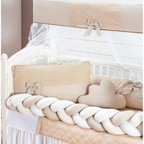 Kit Protetor De Berço Recém 12 Peças Doce De Bebê BegeKit Protetor De Berço Unisex Para Recém Nascido 12 Peças Com Saia Box Modelo Novo Modelo Doce de Bebê Bege Total 12 peças 1 edredom 130cm x 75cm1 cabeceira 0.60 x 0.40 1 lateral 1.28 x 0.251 trança 1.28 x 0.12 1 fronha 0,28 x 0,38 1 lençol de cima com bainha1 bando do mosqueteiro 1.40 x 0.20 1 mosqueteiro 4.50 x 1.50 1 almofada 0.40 x 0.30 1 trocador 0,60 x 0,45 1 saia box 1,30 x 0,70 x 0,30 1 lençol de cima 1,20m x 0,80 cm. Composição:Tecido estampado: 100% algodão.Tecido colorido: 100% poliéster.Tecido lençol : 50% algodão 50% poliéster.Tule : 100% poliamida.Plástico: 100% PVC.Enchimento: 100% poliéster. Edredom dupla face todo matelado com várias costuras.Laterais e cabeceiras com zíper para facilitar a lavagem de seu produto.