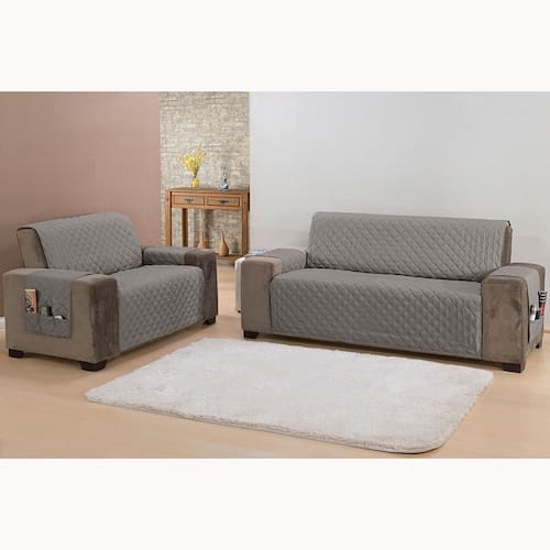 Kit Protetor de Sofá Capa Classic 2 e 3 Lugares Padrão Face Única - Cor: Cinza