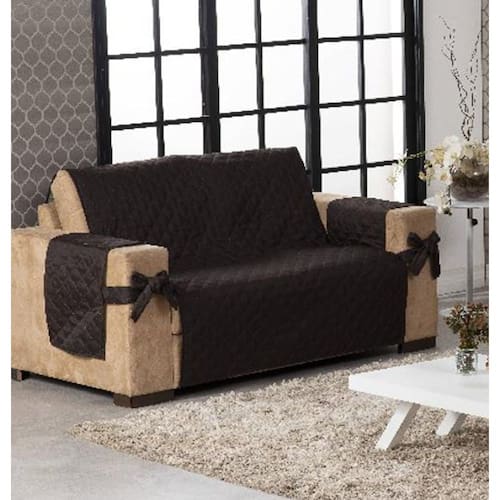 Kit protetor de sofá 2 lugares chocolate com porta objetos lateral e laço Protetor de sofá 2 lugares face única com laço
