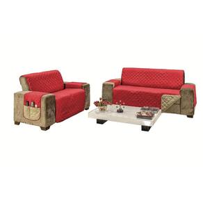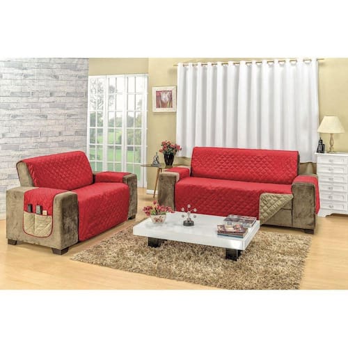 Kit Protetor De Sofá Requinte Vermelho/Castor Dupla Face