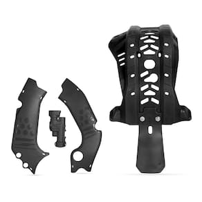 Fabricado em polímero de alta densidade, o kit combina leveza e durabilidade, oferecendo resistência superior às condições adversas encontradas em todas as modalidades off-road.