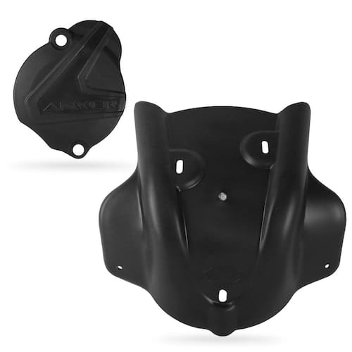 O kit inclui protetor de motor e protetor de tampa do motor, ambos desenvolvidos para proteger as áreas mais críticas da motocicleta contra pedras, galhos e outros obstáculos do caminho.