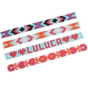 Com este kit de pulseiras você cria diferentes modelos de pulseiras de diamantes com a luluca! São 4 modelos com gabarito para a criança criar e escolher o desenho que quiser. O kit acompanha diferentes cores de diamantes, uma bandeja, gel, caneta coletora e 1 manual de instruções com desenhos fashion e divertidos.