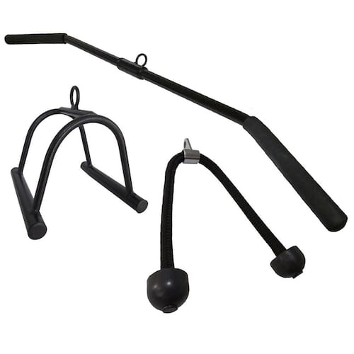 --------- kit puxadores treino costas ---------- 01 - puxador triângulo alça maciça 01 - puxador costa curvo 1m com giro no centro 01 - puxador corda Puxadores triangulo e costa feitos em aço com pega emborrachada e soldas reforçadas, giro central e ótimo acabamento, vai tornar seu treino mais completo, produto de qualidade, nacional e com . Especificações técnicas puxador costa - material: tubo oco de aço 1020 - parede do aço: 2 mm - material argola: aço trefilado 1020 com 6,5 mm de espessura - material da pega: manopla emborracha de 1 1/4 32mm - todo soldado em mig soldas reforçadas - pintura eletrostática texturizada e anti-ferrugem - comprimento total do puxador: 1 m - peso do produto unidade : 1,600 kg - cor: preto Especificações técnicas triangulo - material: tubo oco de aço 1020 1 - parede do aço: 2 mm - material dos arcos: tubo oco de aço 1020 1/2 12,7 mm espessura - material argola: aço trefilado 1020 com 6,5 mm de espessura - todo soldado em mig soldas reforçadas - pintura eletrostática texturizada e anti-ferrugem - comprimento total do puxador: 17 x 14 cm altura x largura - peso do produto unidade : 1 kg - cor: preto Especificações técnicas corda - material: corda trançada em polipropileno virgem - diâmetro: 25 mm de espessura - material encaixe mosquetão: aço cromado com solda reforçada - material de apoio do punho: pvc maciço - corda profissional com alma de pvc maciço - comprimento total do puxador: 75 cm 37,5 cada lado pendurado - peso do produto unidade : 600 gramas - cor: preto