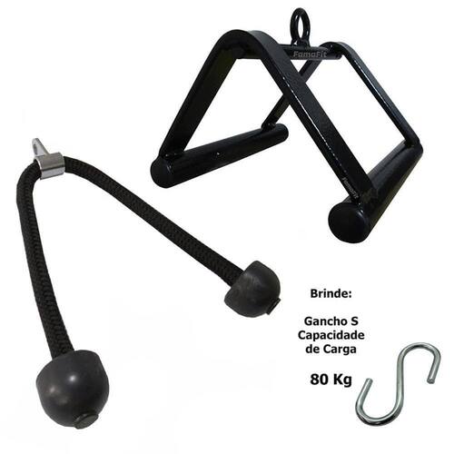 Kit puxadores triangulo remada + puxador corda treino academia ---- kit puxadores triangulo remada + puxador corda ----- Kit puxadores feitos em aço, com soldas reforçadas e ótimo acabamento. Puxador corda tríceps feito em com corda trançada, reforçado e alta qualidade, alça de encaixe em aço cromado e apoio de mão em pvc, maciez nos exercícios evitando calos. Todos feitos em alta qualidade para serem usadas nos mais diversos aparelhos de sua academia, vai tornar seu treino mais completo, produto nacional e com garantia. Especificações técnicas puxador corda- material: corda trançada em polipropileno virgem - diâmetro: 25 mm de espessura - material encaixe mosquetão: aço cromado com solda reforçada - material de apoio do punho: pvc maciço - corda profissional com alma de pvc maçico - comprimento total do puxador: 75 cm (37,5 cada lado pendurado)- peso do produto (unidade): 600 gramas- cor: preto Especificações técnicas puxador triangulo - material: aço 1020 1 polegada- parede do aço: 2 mm- material dos arcos: aço trefilado 1020 1/2 (12,7 mm) espessura- material argola: aço trefilado 1020 com 6,5 mm de espessura- todo soldado em mig soldas reforçadas- pintura eletrostática texturizada e anti-ferrugem- peso do produto (unidade): 1 kg- cor: preto Importante - podemos montar kits com a quantidade e itens que forem necessárias para sua academia- tire suas dúvidas conosco no campo de perguntas- nossos puxadores são profissionais, testados e aprovados, ótimo custo benefício Tire sempre suas dúvidas antes da compra Estamos a disposição AtenciosamenteEquipe famafit - tudo para seu treino