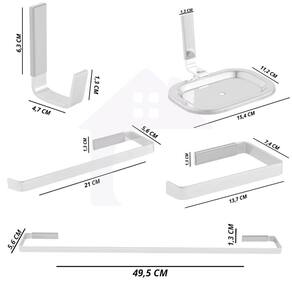 Fixação: parafusos e buchas Composição do kit: 01 porta toalha de banho, 01 porta toalha de rosto, 01 saboneteira, 01 papeleira 01 cabide duplo 01 porta shampoo canto vidro 01 torneira cod 1065