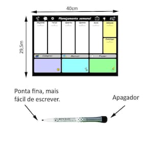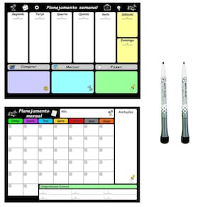 Conteúdo: - 1 quadro magnético semanal 29,5cm x 40cm - 1 quadro magnético mensal 29,5cm x 40cm - 2 canetas preta para quadro branco