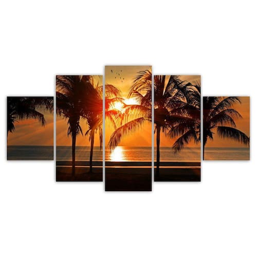 Kit Quadrod Decorativo Por Do Sol Praia Coqueiro Mar