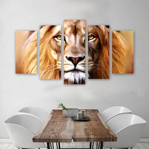Kit Quadros Decorativos Leão 5 Peças Sabe aquela sensação agradável, harmônica, bonita que sentimos em alguns lugares Agora você também pode ter essa sensação em sua casa, de forma simples A arte quadro, possui o quadro ideal para decorar seu espaço deixando sua casa, empresa ou escritório lindos e moderno e no seu estilo Por que escolher arte quadro Porque trabalhamos diariamente, buscando os melhores resultados e atendimento para agradas todos nossos clientes, pois você é nossa prioridade Cada quadro nosso é minuciosamente trabalhado em nossa produção própria, garantindo os mais altos níveis de qualidade, pois acreditamos que um ambiente harmônico afeta diretamente seu humor, desempenho e sentimentos. Além disso, basta retirar o produto da embalagem e pendurar em sua parede, e está pronto seu ambiente passa a ser único e dá destaque em quem você é. Pensando nisso, desenvolvemos quadros com uma ampla variedade de estilos, podendo também personalizar com a foto ou medida que desejar. Para que possa encontrar o quadro perfeito, e que tenha a sua cara. Medidas do produto - 1 peça na medida de 20 cm de comprimento e 60 cm de largura com 2cm de espessura. - 2 peças na medida de 20 cm de comprimento e 50 cm de largura com 2cm de espessura. - 2 peças na medida de 20 cm de comprimento e 40 cm de largura com 2cm de espessura. Totalizando 100 cm de comprimento por 60 cm de largura com 2cm de espessura. Material - trabalhamos com o tecido canvas que é um material especial para impressão 100% algodão, com uma preparação especial resinada anti-mofo. Apropriada para impressões de obras de artes e impressão de fotos em tela, muito Utilizado em exposições nos museus tornando assim seu quadro ainda mais belo. Instalação e limpeza - a instalação é bem simples pode utilizado o método tradicional, pendurado com prego e martelo. Ou se preferir pode ser fixado com buchas e parafusos. - para limpeza, utilize apenas um pano umedecido com água sem produtos químicos , recomendamos também que o produto não fique exposto a muita umidade e a muito sol, para garantir a durabilidade da cor. Seu quadro chegue quebrado - isso é muito difícil de acontecer porém, caso aconteça, basta nos enviar uma mensagem explicando o que houve e nos enviando fotos das que enviaremos outra peça sem nenhuma burocracia ou custo adicional Poderei rastrear meu pedido - claro assim que seu quadro for despachado, enviaremos todas informações de rastreamento para que você fique ciente do momento em que ele sair daqui até chegar em sua casa. O quadro é pintado a mão - não. Seguindo as tendências de decoração atuais, nossas artes são impressas em tecido canvas e grampeados em bastidores de madeira. Trabalhamos sempre para levar o melhor produto para nossos clientes sempre em busca da melhor qualidade atenciosamente equipe arte quadro.