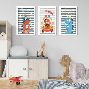 Kit Quadros Infantil Dino Kids 20X30 3 peças