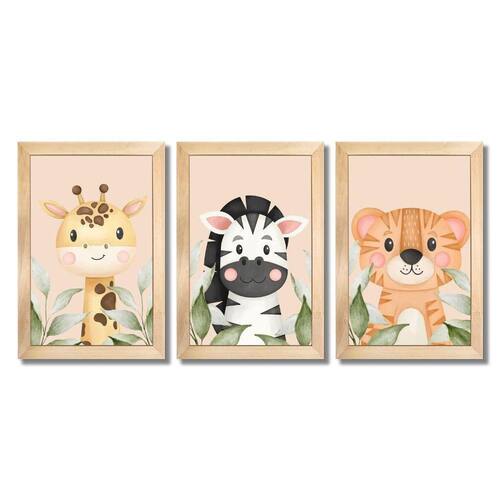 Kit Quadros Infantil Safari Aquarela 20X30 3 peças