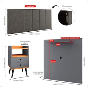 O Painel conta com uma prateleira prática para dispor aparelhos eletrônicos, itens decorativos ou até mesmo livros compactos. Um detalhe moderno que valoriza o seu quarto ou sala, além de otimizar o espaço disponível.