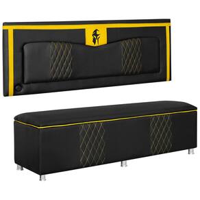 kit Fighter Para Quarto Gamer 160cm - Sofa StoreTransforme seu quarto em um verdadeiro setup gamer completo com o Kit Gamer Fighter, que une cabeceira com Entrada USB e Tipo C integrada + baú organizador em um único combo de estilo, tecnologia e organização.Produzido em corino premium, com emblema bordado exclusivo e acabamento temático, o kit deixa sua cama box queen 160cm muito mais imponente e funcional.Carregue celular, controle e headset direto na cabeceira, sem fios espalhados, enquanto o baú mantém todo seu setup, roupas e acessórios sempre organizados.Ideal para quem quer quarto gamer estiloso, sem bagunça, com mais conforto e praticidade no dia a dia.Kit Gamer Fighter: mais imersão, mais organização e muito mais estilo no seu setup!CARACTERÍSTICAS DO PRODUTO:- Estofamento: Espuma D26;- Revestimento: Corino;- Material da Estrutura: Madeira de eucalipto de reflorestamento;- Pés em PVC;- Modelo retangular, tendência nos lares e comércios!DIFERENCIAIS:- Produto de alta qualidade;- Design moderno;- Costura resistente;- Estrutura segura;- Para a limpeza, recomendamos utilizar pano levemente úmido e detergente neutro.DIMENSÕES BAÚ:Fechado:Largura: 160 cmAltura: 45 cmProfundidade: 45 cmPeso: 26 kg.Aberto:Largura: 152 cmAltura: 30 cmProfundidade: 38 cmDIMENSÕES DO PAINEL: Largura: 160 cmAltura: 60 cmProfundidade: 7 cmPeso: 7 kgVOLUMES, MONTAGEM E GARANTIA:- As duas peças chegaram na mesma embalagem;- O produto chegará montado, sendo necessário apenas rosquear os pés;- Garantia do fabricante: até 90 dias corridos após o recebimento, contra defeitos de fabricação;INFORMAÇÕES IMPORTANTES:- A entrega do produto é realizada em todo território nacional, até onde as rodovias alcançam.- Objetos decorativos que aparecem na foto não acompanham o produto;- Pode haver diferença de tonalidade entre a imagem e o produto real, por conta de lote de tecido, tratamento de imagens e a calibração de cores do seu monitor;- Por se tratar de estofado as medidas podem ter uma variação em até 3 cm;- Confira as dimensões do produto e certifique-se de que passará normalmente por elevadores, portas, escadas e/ou corredores de sua residência, já que nossa entrega não inclui a subida de lances de escada, ou o içamento de produtos;
