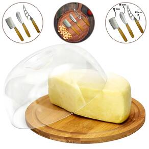 Apresente seus queijos com charme e praticidade utilizando a Queijeira decorativa com base em bambu ecológico e tampa transparente + Jogo de Facas para servir Queijos. A Queijeira é fabricada com bambu ecológico e tampa poliestireno transparente, ela garante a conservação dos alimentos, protegendo-os de odores e contaminantes. Seu design sofisticado é ideal para compor a mesa posta em ocasiões especiais ou no dia a dia. Além de funcional, é uma escolha sustentável para quem valoriza produtos que unem beleza e responsabilidade ambiental. O Jogos de Facas para Servir é cuidadosamente projetado, apresentando um cabo de madeira de alta qualidade e lâminas de aço inoxidável. As dimensões generosas e a afiação precisa das bordas possibilitam cortar, espalhar e servir tanto queijos macios quanto duros com facilidade. Este conjunto é a escolha ideal para diversas ocasiões, seja em bandejas de festa, na mesa de jantar, durante um churrasco e muito mais. O que vem na embalagem: 1 Queijeira com Tampa 19cm 1 Faca para Queijos Duros 1 Cutelo 1 Espátula