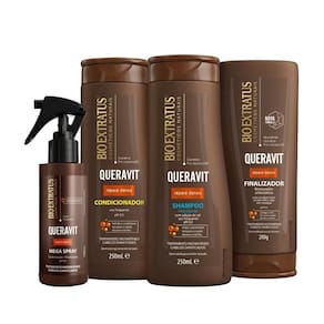 A Ísis Cosméticos é uma empresa que atua no ramo de produtos para beleza, cosméticos e cuidados pessoais. Nós da loja Ísis Cosméticos trabalhamos com as principais marcas do mercado, levando até você os melhores produtos e lhes oferecendo uma ótima experiência. Somos uma empresa que preza pela confiança e satisfação de nossos clientes. ========================================================================================= Linha Queravit - Tratamento Instantâneo Qualidade e eficiência garantida no tratamento diário dos cabelos danificados. Indicação: Cabelo danificado. Função: Reconstruir a queratina e fechar as cutículas, restaurando o brilho e a vitalidade dos cabelos danificados. Resultados e Benefícios: Promove selagem imediata das cutículas capilares, recuperando os fios danificados. Ativos Romã - Normaliza a secreção da glândula sebácea. Confere nutrição e hidratação aos fios. Desintoxica as fibras capilares e deixa os fios mais soltos. Pró Vitamina B5 - Retém umidade, evita pontas bipartidas, ajuda a reparar os danos causados por tratamentos químicos e agressões externas. Queratina Concentrada - Interage com as partes danificadas e regenera e reestrutura a fibra capilar de dentro para fora, reconstruindo e fortalecendo os fios. Silicone Amínico de baixo peso Molecular - Com baixo peso molecular, forma uma película protetora sobre os fios, principalmente nas regiões mais danificadas. Shampoo Queravit O Shampoo Hidratante Queravit é ideal para o uso frequente. Sua fórmula equilibrada, rica em queratina e pró-vitamina B5, trata os fios e proporciona uma limpeza suave, que devolve a leveza, o brilho e a vitalidade natural dos cabelos. Ph5,5. Sem adição de sal. Condicionador Queravit O Condicionador Queravit é rico em queratina, pró-vitamina B5 e agentes catiônicos que reparam os danos causados na fibra capilar. Sua fórmula hidrata, desembaraça e nutre, devolvendo força e vitalidade aos cabelos. Ph 3,5. Finalizador Queravit Mega Spray Queravit O Mega Spray Queravit foi desenvolvido para o cuidado intensivo dos cabelos. Pode ser para cauterização ou finalização. Durante o processo de cauterização, restaura profundamente a fibra capilar. Ao ser aplicado para finalizar, desembaraça e disciplina os cabelos, facilita o processo de escovação e protege os fios do calor do secador. Deixa um toque sedoso e um brilho incomparável. Ph 4,0. ========================================================================================= Anúncio composto por: 01 unid. Pós-shampoo Queravit 250mL 01 unid. Condicionador Queravit 250mL 01 unid. Finalizador Queravit 200g 01 unid. Mega Spray Queravit 100mL SKU Interno: IS00424 Agradecemos a preferência. Marca: Não Informado