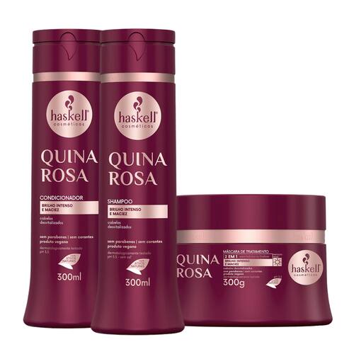 A linha Quina Rosa foi desenvolvida para revitalizar os cabelos opacos e sem vida, e promover o condicionamento intensivo dos fios. Ela proporciona brilho, maciez e possui ação antifrizz, sua formulação conta com o extrato de quina rosa, que blinda os fios das agressões externas.