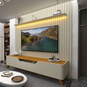 Ambos os móveis possuem acabamento em cor Naturale e pintura UV, garantindo durabilidade e preservando sua beleza ao longo do tempo. Juntos, o Rack Supremo e o Painel Nobre criam um ambiente de estar refinado e funcional, onde você pode desfrutar de momentos de conforto e entretenimento incomparáveis.