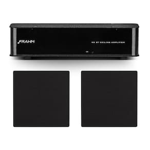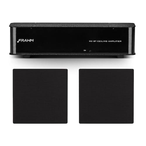 Kit RD BT Ceiling + 2 Arandelas 6Cx 50w Pretas Frahm - Características Gerais do Produto: • Item 1: Amplificador Frahm RD BT Ceiling;• Marca: Frahm;• Modelo: Rd BT Ceiling;• Potência: 2 x 20 W 4? por canal;• Bluetooth: V 5.0;• Consumo máximo: 56W;• Amplificador Estéreo: Classe D;• Alimentação: Fonte Universal 100 - 240 VAC;• Dimensões do produto (A x L x P): 5,5 x 20,1 x 7 cm;• Dimensões do produto + embalagem (A x L x P): 6 x 23,5 x 14 cm;• Peso do produto: 0,6 kg • Item 2: Arandelas Frahm 6" Quadrada CX 50w Pretas;• Marca: Frahm; • Modelo: 6CX Preta;• Formato: Quadrada;• Tipo: Coaxial;• Impedância: 8 Ohms;• Potência Máxima: 100 W;• Potência RMS: 50 W;• Woofer 6": Cone vacuum forming suspensão de tecido impregnado, bobina móvel em PSV e conjunto magnético de 71mm;• Tweeter: Neodímio e domo Mylar;• Divisor: Capacitivo 6dB / oitava;• Resposta de frequência: 60 - 20KHz;• SPL (dB/W/m): 92;• Dimensão em mm (AxLxC cm): 22,2 x 22,2 ;• Dimensões do furo para instalação: 196 x 196mm;• Altura da arandela: 70 mm;• Dimensão (A x L x C): 85 x 24,5 x 24,5 cm;• Peso: 1,26 kg • Garantia: 12 Meses Garantia: • 12 Meses