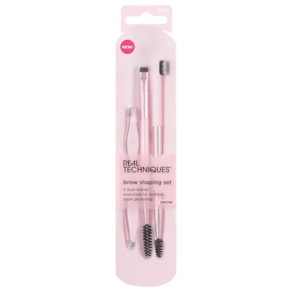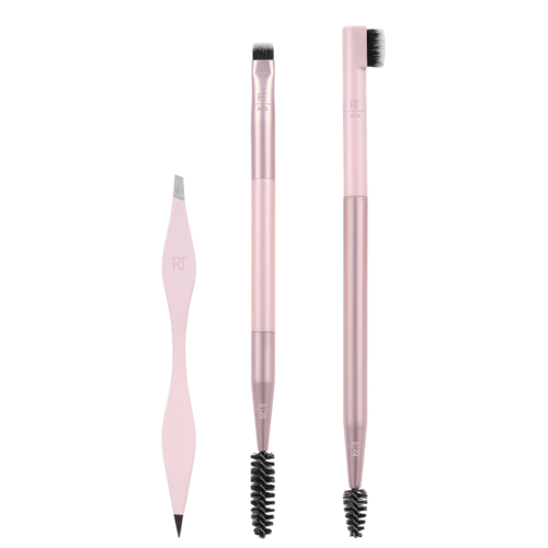 Kit com pincéis e uma pinça para os cuidados das sobrancelhas. Real Techniques Brow Styling Set Tweezers confere um visual mais marcante e estiloso.