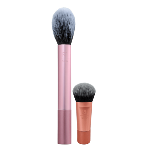 Kit Real Techniques Pincéis para Make com dois pincéis que te ajudam a criar uma pele com acabamento natural, sem deixá-la marcada ou com acúmulos de produto e, com uma distribuição uniforme sobre todo o rosto.