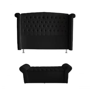 Essa cabeceira casal estofada é um luxo só, isso porque o seu design curvo somado aos botões revestidos cria um ambiente clássico e charmoso.