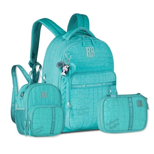 Um kit premium que vai conquistar as fãs da Rebecca Bonbon com ainda mais versatilidade Mochila RB27005: confeccionada em nylon com matelassê de estrelas e corações, possui compartimento principal espaçoso, divisórias internas, bolso antifurto traseiro, compartimento acolchoado para notebook e tablet, bolsos telados laterais e bordado exclusivo no costado. Acompanha chaveiro pompom, mascote 3D, medalhinha de metal, cadarço estilizado e cartela de adesivos. Dimensões: 48x35x19cm. Lancheira RB27007: modelo 2 em 1 super versátil Pode ser Utilizado como lancheira de mão, transversal ou até mesmo nas costas como mochilinha. Conta com revestimento térmico, bolso frontal de fácil acesso e bolsos telados laterais para garrafinhas. Estilo matelassê com cadarço acetinado logado e puxadores personalizados. Dimensões: 27x20x12cm. Estojo Box RB27004: confeccionado em nylon com matelassê, é ideal para manter tudo em ordem. Possui 36 elásticos para organizar lápis e canetas, compartimento interno com zíper e capacidade para até 100 itens. Dimensões: 22x16x6cm. Esse kit é a escolha perfeita para quem busca sofisticação, praticidade e toda a magia da Rebecca Bonbon em cada detalhe. Marca: Não Informado