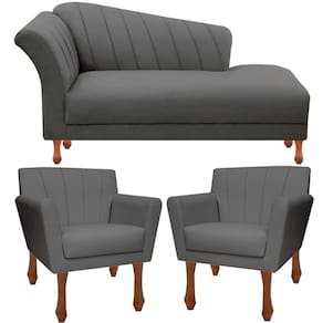 Kit Recamier Sofá Divã Clinica 180 + 2 Poltrona Iza Retro sintetico Cinza