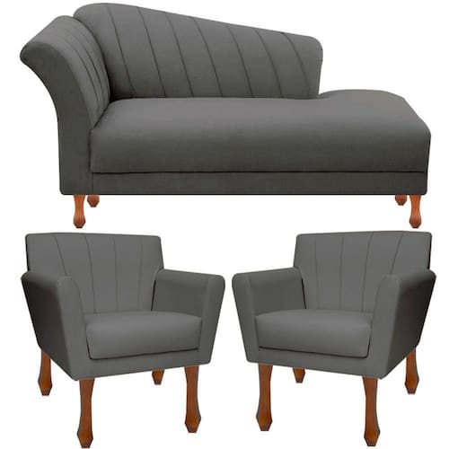 Kit Recamier Sofá Divã Clinica 180 + 2 Poltrona Iza Retro Cor:sintetico Cinza