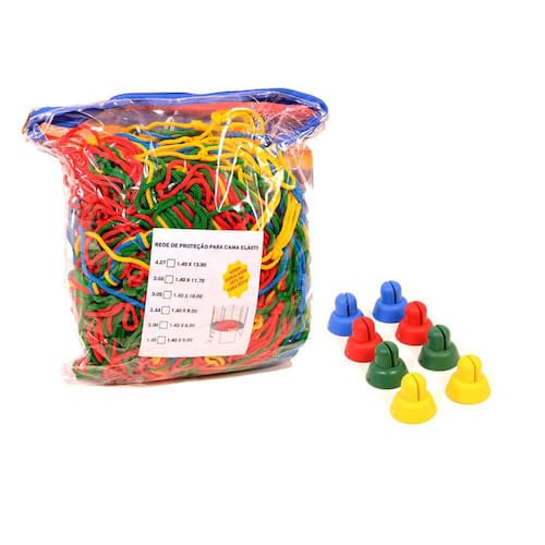 Rede de Proteção Colorida My Equip Para Cama Elástica Pula Pula Melhor Material Indicada para Cama Elástica Nacional ou Importada no formato circular com diâmetro de 4,40m conforme dimensões abaixo: - Medidas: 1,40m A x 13,90m C IMPORTANTE: Para saber o diâmetro de sua cama faça o seguinte procedimento: - com ela montada, meça com uma trena de ferro a ferro pelo meio da cama elástica, assim irá encontrar o diâmetro correto. Especificações Rede de Proteção Colorida My Equip - Rede de malha 10cm; - Rede multicolorida; - Cores vibrantes que destacam a estética do brinquedo; - Rede fabricada com fio de polipropileno de 4mm de espessura; - Proteção anti-UV; - Excelente acabamento, proporcionando maior segurança e durabilidade; - : 30 dias contra defeito de fabricação; - Validade do Produto: Indeterminada; - Não acompanha acessórios. DICA: Para maior durabilidade do produto, após o uso conservar em local fechado. A rede My Equip é confeccionada com as melhores matérias-primas. Ponteira para Haste Isotubo My Equip para Cama Elástica ou Pula Pula. A ponteira é um acessório para cama elástica indicada para fixação das rede de proteção. As ponteiras são desenvolvidas para encaixarem em hastes de 1 e 1 1/4 polegadas, respectivamente 25,4 milímetros ou 31,75 milímetros. Nossa ponteira para haste de cama elástica está disponível em 4 cores: amarelo, azul, verde e vermelho. As cores serão enviadas conforme disponibilidade do nosso . Imagens meramente ilustrativas. ATENÇÃO: Ponteira indicada para hastes de 1 e 1 1/4 polegadas. Detalhes da Ponteira para Haste Isotubo de Cama Elástica Pula Pula My Equip - Kit com 8 unidades coloridas; - Material: Polietileno de alta densidade; - Produto atóxico; - Super leve; - Resistente; - : 90 dias contra defeito de fabricação; - Validade do Produto: Indeterminada. IMPORTANTE: A ponteira é um acessório para cama elástica que tem a finalidade de fixar as redes de segurança das camas elásticas, evitando assim que a rede caia. Marca: Não Informado Ean: 2960000375936