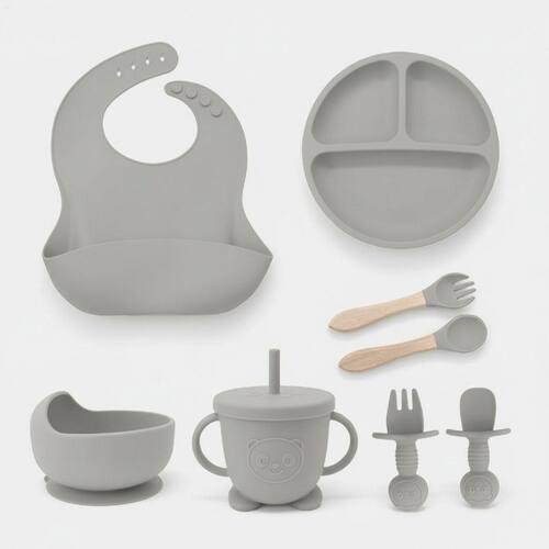 Kit 8 Peças Silicone Infantil com Ventosa – Prato, Tigela, Talheres, Babador e Copo O kit de alimentação infantil com 8 peças em silicone com ventosa foi desenvolvido para tornar as refeições mais práticas e confortáveis. Produzido em silicone de qualidade alimentar, oferece resistência, durabilidade e praticidade no dia a dia. Com textura antiderrapante, auxilia na independência da criança na hora de comer, reduzindo bagunça e respingos. Compacto e leve, é indicado para uso diário, passeios e viagens. Pode ser utilizado no micro-ondas e na geladeira, mantendo os alimentos na temperatura desejada. Também é uma ótima opção de presente para famílias com crianças pequenas.