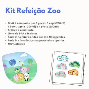 A Nova Linha de Kits alimentação e refeição Buba está demais Com Personagens super fofos e divertidos, vão auxiliar na hora da alimentação das crianças e bebês em introdução alimentar. O Kit inclui por 3 peças: 1 Prato raso com 2 divisorias: 350 ml 1 prato bowl : 300ml 1 copo : 250 ml Pode ir ao micro-ondas 40 segundos e a lav-louças somente na prateleira superior Livre de BPA e ftalatos Produto 100% Atóxico Este produto não pode ser fervido.