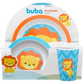 Kit Refeição Animal Fun - Leão Buba O Kit Refeição Animal Fun Leão buba vai tornar o momento da refeição mais divertido Com personagem lúdico de leão que chama a atenção das crianças. Conteúdo da embalagem: 1 prato raso + 1 prato bowl tigela e 1 copo. Medidas: prato raso: 21 x 2 xP cm Prato bowl: 16,5 x 4 xP cm Copo: 10 x 6,5 Ax cm Display: 24 x 25 x 8 AxLxP cm Composição: Polipropileno. Vai ao micro-ondas e à lava-louças. Recomendado para crianças com +6 meses. Possui certificação pelo INMETRO. Produtos livres de BPA. Garantia de 90 dias contra defeitos de fabricação. Ean: 7908103707341