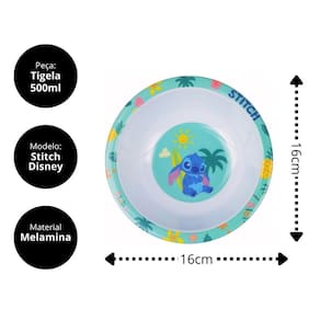 Jogo Refeição Infantil Melamina Stitch Disney 7 Peças