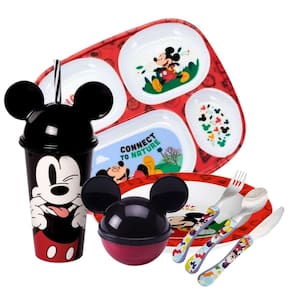 Kit Refeição Infantil Mickey 7Pç Pratos, Copo e Talheres