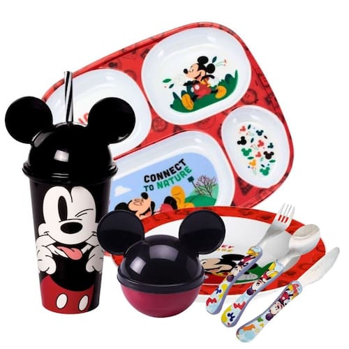 Refeição com Diversão para os Pequenos! Kit Melamina Mickey Mouse - 7 Peças