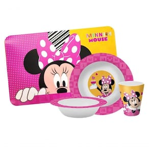 Refeição com Diversão para os Pequenos! Kit Melamina Minnie Mouse - 4 Peças