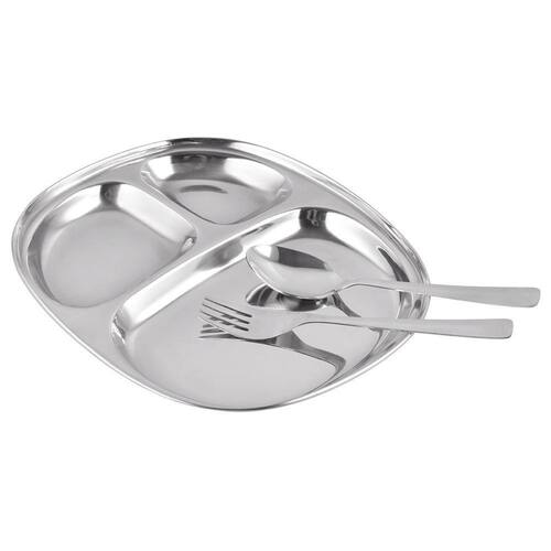 Kit Refeição Infantil Prato Garfo Colher 3 peças Inox