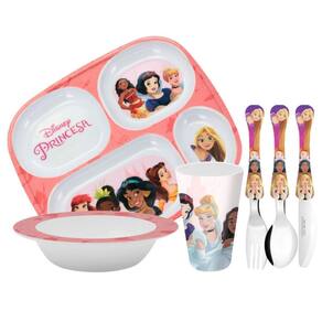 Kit Refeição Infantil Princesas 6 Peças Incluso Talheres