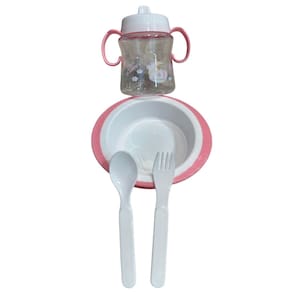Este kit de refeição infantil é composto por quatro peças em plástico resistente e seguro, especialmente desenvolvido para o uso diário das crianças.