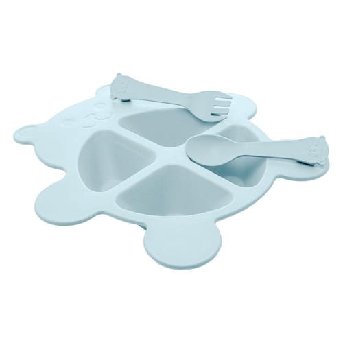 Kit Refeição Prato 2 Talheres de Bambu Baby Bear Azul - Lyor.