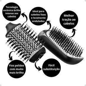 -Cerdas de Nylon Dupla Altura: Melhor tração ao cabelo, propocionando fios polidos com muito mais brilho.