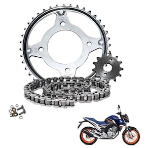 Contem: *1 Pinhão 13 Dentes *1 Coroa 40 Dentes com 4 furos com protetor *1 Corrente com Retentor 520uox110L elos emenda com trava