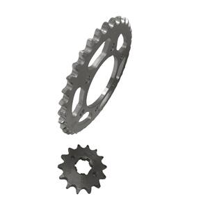 Embalagem: 01 Kit Transmissão Completo. ( Coroa, Pinhão e Corrente )