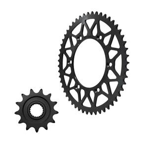 Coroa e pinhão fabricado em aço S9 de extrema dureza que garante qualidade e durabilidade, com corte a laser que garante uma peça perfeita e com encaixe preciso.