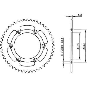 Coroa e pinhão fabricado em aço 1045 de extrema dureza que garante qualidade e durabilidade, coroa com pintura a pó.