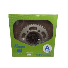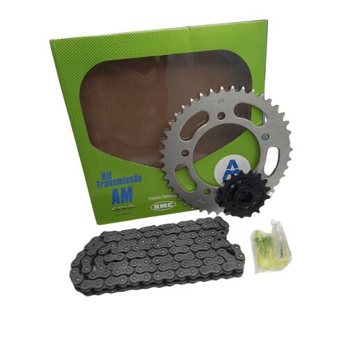Embalagem: 01 Kit Transmissão Completo. ( Coroa, Pinhão e Corrente )