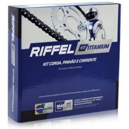 Kit Relação Titan 150 Fan Cg Transmissão Riffel 1045 Fan150 Caracteristicas Material da coroa: Aço 1045 Material do pinhão: Aço 1045 Quantidade de dentes da coroa: 43 Quantidade de dentes do pinhão: 16 Quantidade de ligações da corrente: 118 Marca: Não Informado Ean: 7895230010836